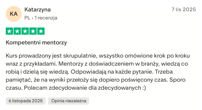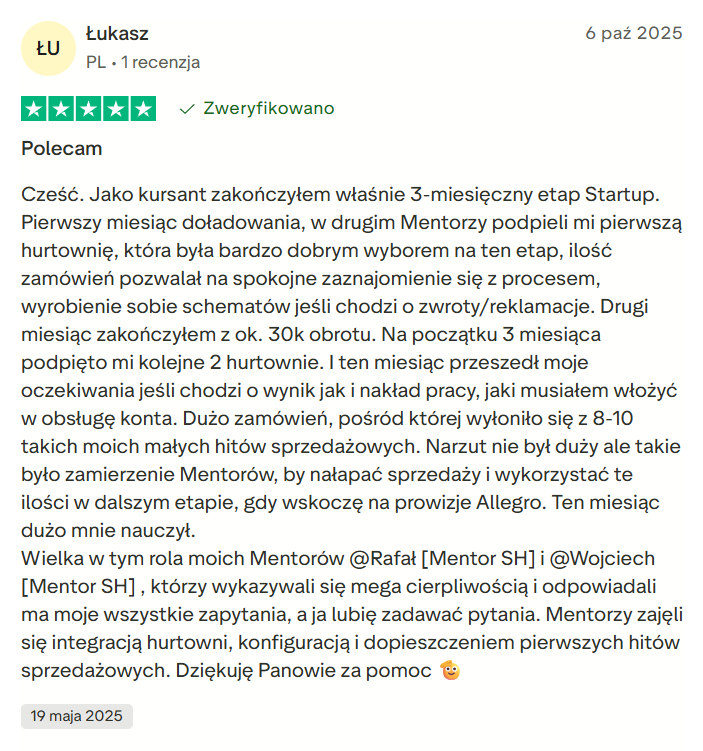Współpraca z mentorem (Kamilem Zawistowskim, który ma ponad 21 lat doświadczenia w eCommerce i ponad 82 mln zł sprzedaży online) odegrała tu istotną rolę.