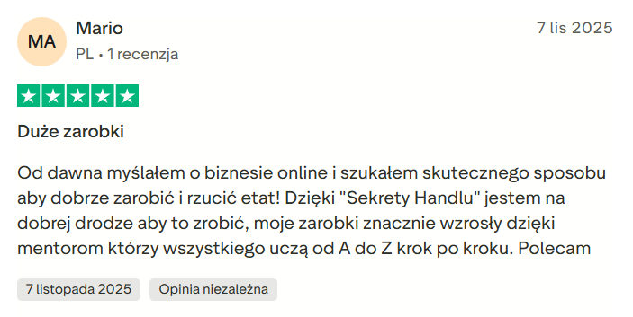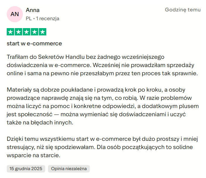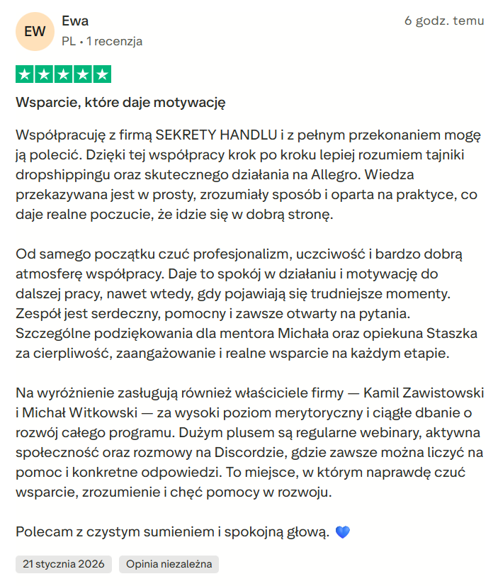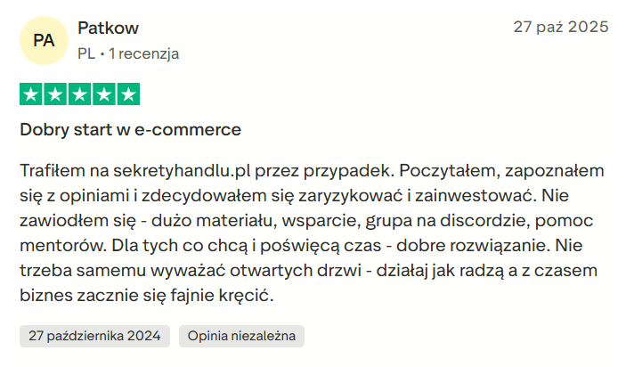 Karol to kolejny przykład osoby, która, mimo braku wcześniejszego doświadczenia w branży e-commerce, osiągnęła znaczące wyniki.
