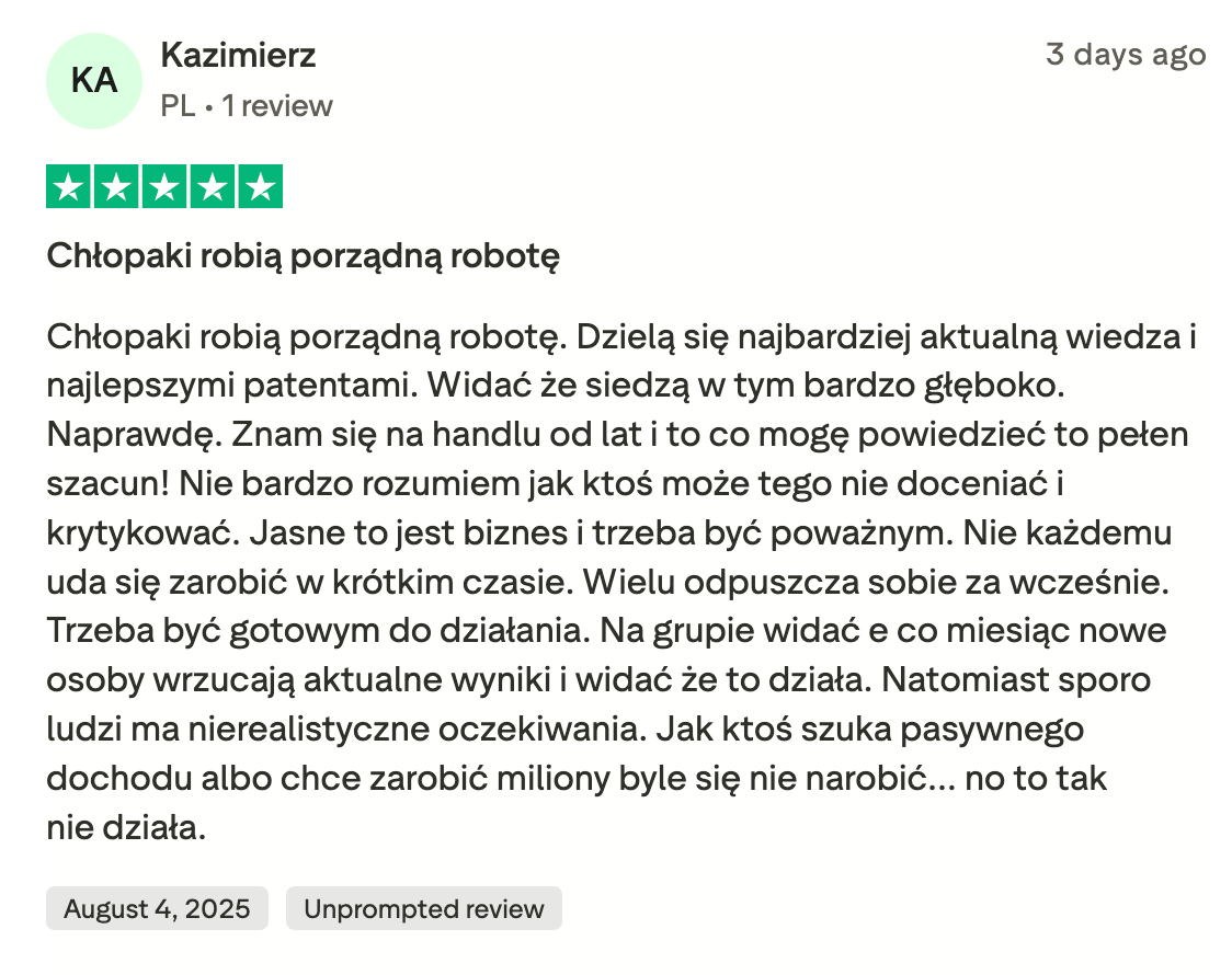 Zygmunt R. - "Wyniki innych pokazują, że to działa - a to daje kopa!"
